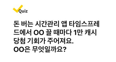 📝 돈 버는 시간관리 앱 타임스프레드에서 OO 끌 때마다 1만 캐시 당첨 기회가 주어져요. OO은 무엇일까요?