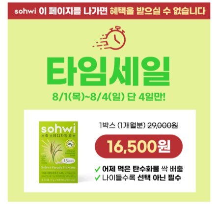 📝 🚨단4일 1+1 역대최저가🚨 후기 2,400개! 78만포 전량완판! 소휘 소화효소는 선택이 아닌 필수! 수량소진시 조기종료! 어제 먹은 야식 탄수화물 죄책감 싹 분해! 소휘 효소는 한국인의 OOO에 맞추어 탄수화물 분해효소의 활성도에 집중하고, 단백질의 분해 효소의 균형을 맞추었습니다. 식후 1포 습관으로 속편한 하루 되세요! 여기서 OOO은?