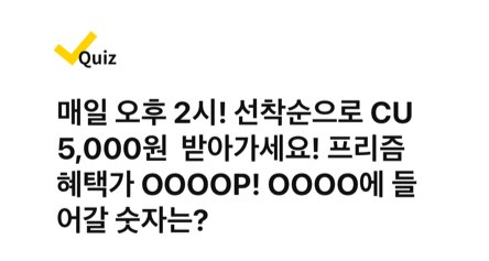 📝 매일 오후 2시! 선착순으로 CU 5,000원 받아가세요! 프리즘 혜택가 OOOOP! OOOO에 들어갈 숫자는?