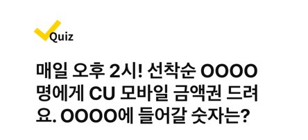 📝 매일 오후 2시! 선착순 OOOO명에게 CU 모바일 금액권 드려요. OOOO에 들어갈 숫자는?