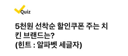 📝 5천원 선착순 할인쿠폰 주는 치킨 브랜드는? (힌트 : 알파벳 세글자)