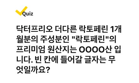 📝 닥터프리오 더다른 락토페린 1개월분의 주성분인 "락토페린'의 프리미엄 원산지는 OOOO산입니다. 빈 칸에 들어갈 글자는 무엇일까요?